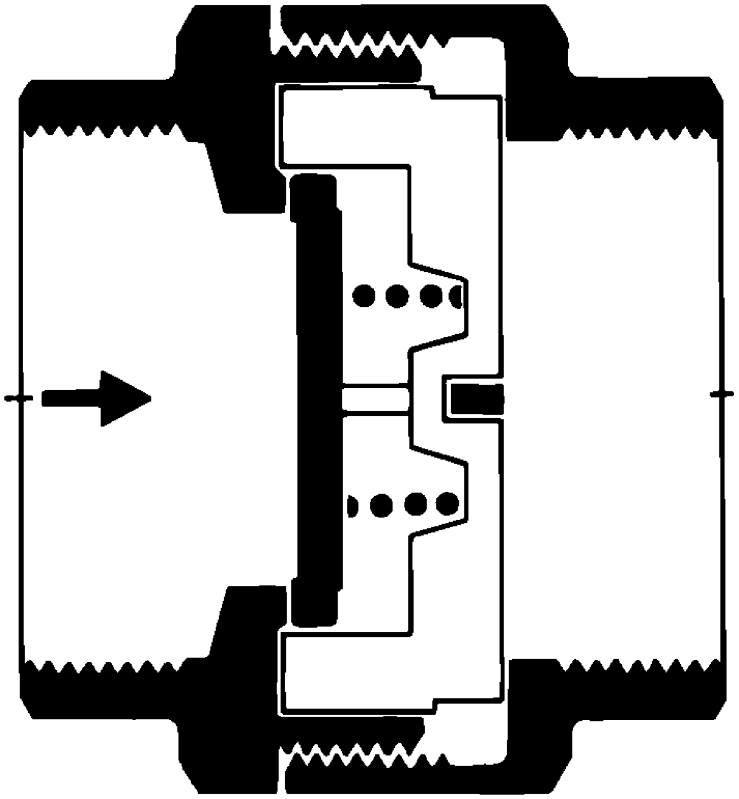 kontraventil medmetaltætende磁盘ikorrosionsfast rustfritstålog gevindmuffer。对于Systemer uden pulserende流。对于væske,宇宙气og潮湿。VENTILENÅBNERVED ET SIMBERNSTRYKPÅCA.15-20毫巴。