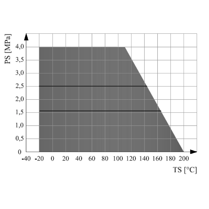 Max. Arbejdstryk 40 barg (DN15-DN50), 25 barg (DN65-DN400)