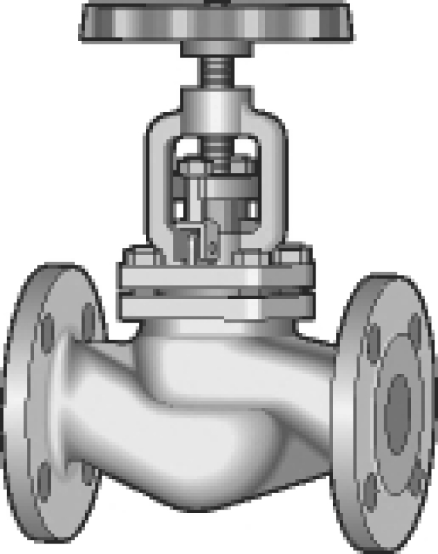 Vedligeholdelsesfri bælgsædeventil med flangetilslutning. Ventilen er forsynet med rustfri stålbælg, spindel og metaltættende ventilkegle.