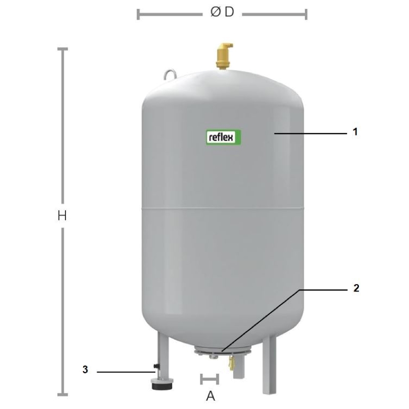 ekspansionsbeholderen vedvarende er mindre end -10°C, eller kan overstige 70°C, anbefales at montere en mellembeholder Reflex V, at 8303, før ekspansionsbeholderen for beskytte denne。