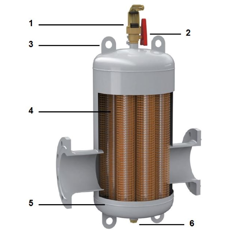 | 4 | Luftadskiller, trådnet, som adskiller luften optimalt fra væsken |