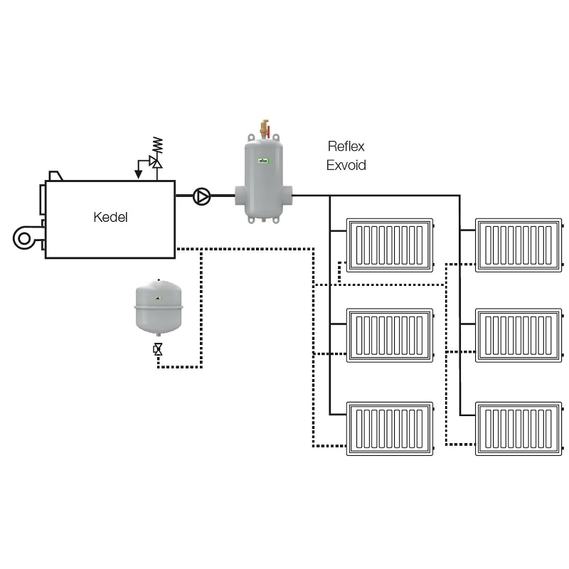 Selvvirkende mikrobobleaflufter, type Reflex Exvoid A, i stål, fjerner cirkulerende frifriluft - og gasbobler i varme- og køleanlæg。