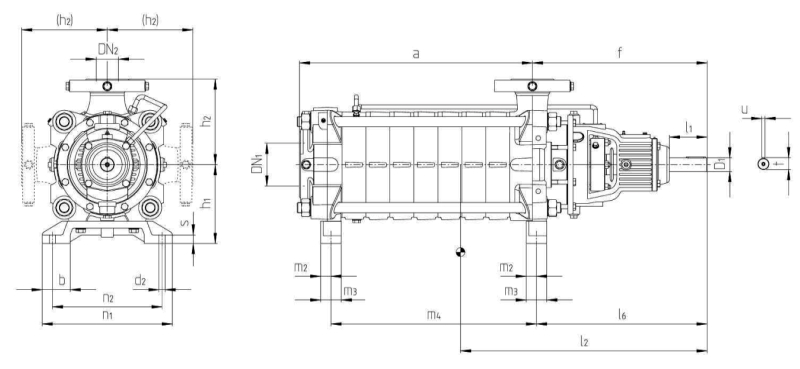 | 圣ørrelse | DN2 | DN1 | f | h1 | h2 | b | 年代 | 平方米 | m3 | n1 | n2 | d2 | 16 | D1 | I1 | t | U |