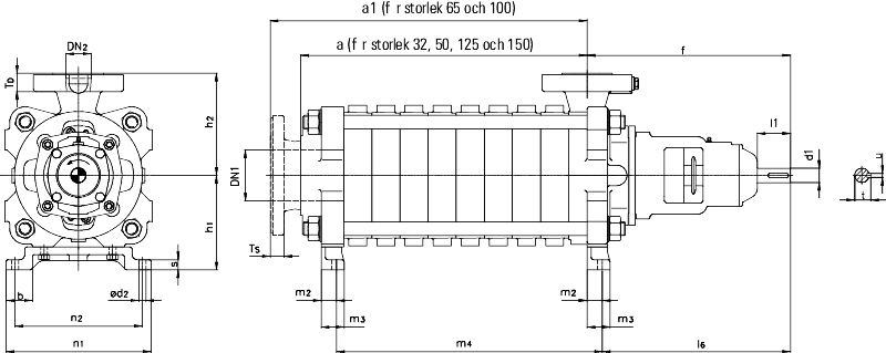 | størelse. | DN2. | DN1. | F | TS. | 一个 | H1. | H2. | B. | S. | M2 | M3 | n1. | N2. | D2 | I6 | D1 | I1 | T. | 你 |