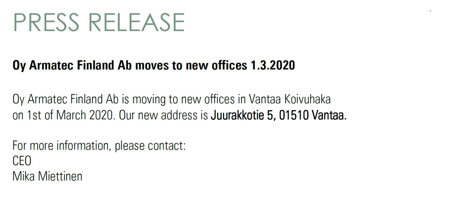 Muutamme Uusiin Toimitiloihin Vantaan Koivuhakaan 1.3.2020。