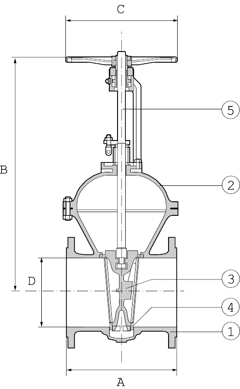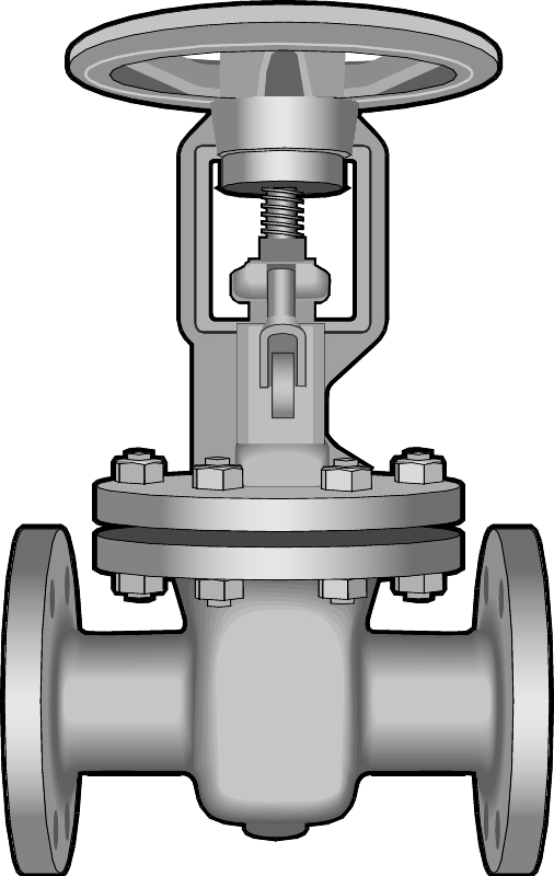 Kiilaluistiventtiili laipoin。Ulkopuolinen karakierre。Sulkuventtiiliksi höyrylle, vesille ja petrokemian tuotteille。Ei suositella saatokayttoon。