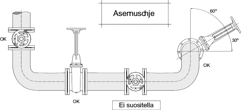 Suuret nimelliskoot ja是käyttöpaineet vaativat venttiilille ohitusventtiilin paine-eron tasaamiseksi (kts。真主安拉oleva taulukko) tai käsivaihteen käytön。