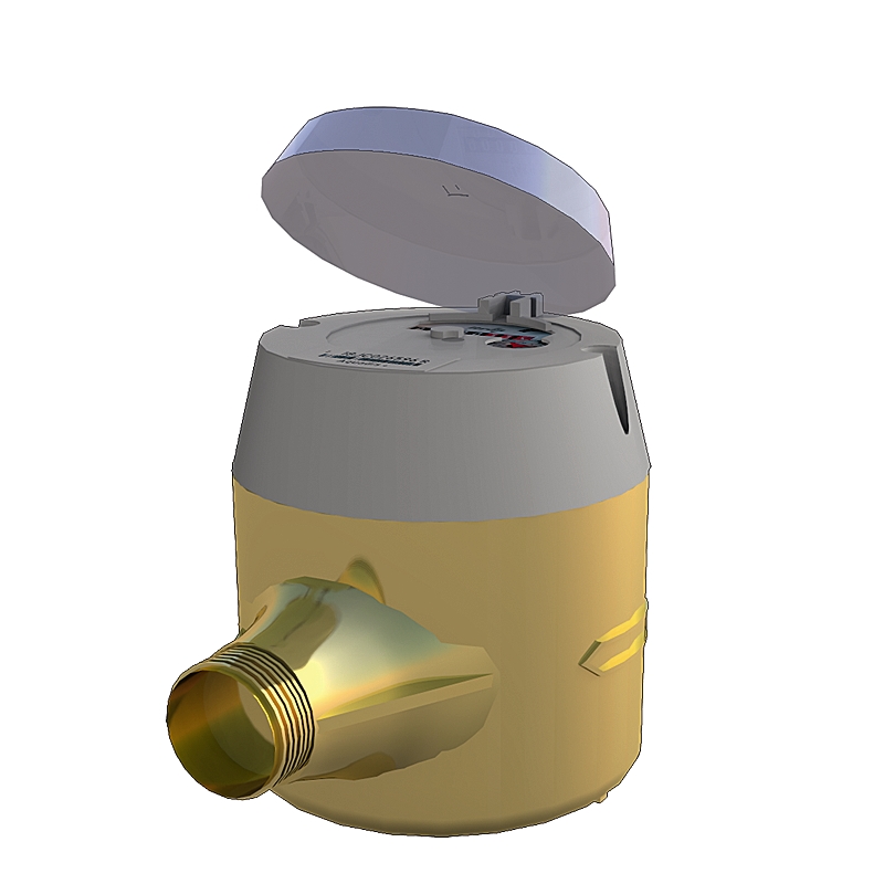 旋转活塞容积式冷水计,精度为R160。适用于水平和垂直安装。低启动流量允许泄漏检测。通过Cyble模块、脉冲/数据(M-bus)/传感器进行通信,型号为AT 727CY。