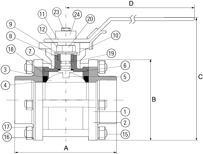 不锈钢球阀AT 3534S…,全孔,焊接端部和钢杠杆。