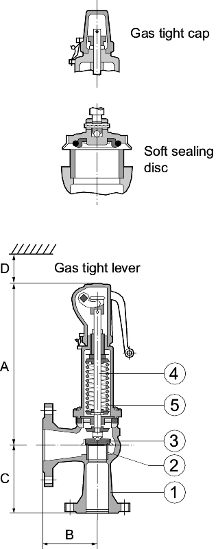全提升安全阀。法兰连接。结节钢,钢或不锈钢。软或金属坐盘。DN20 / 40-200 / 300(结节铁DN25 / 40-200 / 300,不锈钢DN25 / 40-150 / 250),PN16-40