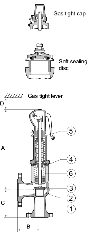 全升降式安全阀。法兰连接。钢或不锈钢。软阀座或金属阀座阀瓣。DN20/40-200/300(不锈钢DN25/40-150/250), PN40。背压补偿不锈钢波纹管。