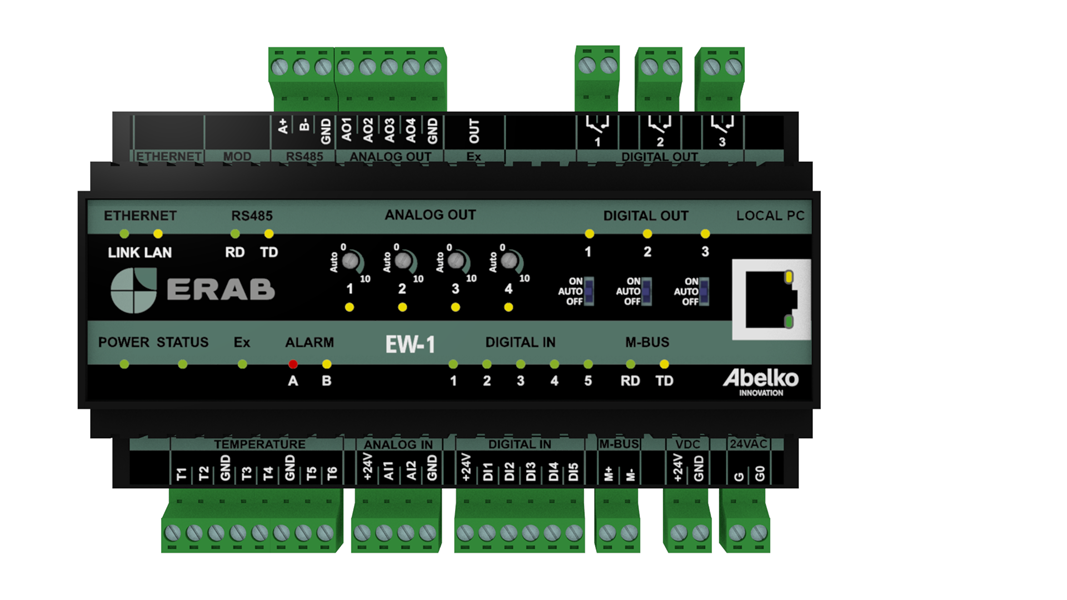 Erab EW-1 duke med modbus TCP gränssnitt både som och slav。
