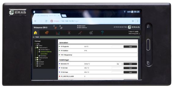 一些补充,直到EW-3 finns en 7 "触摸färgskärm för avläsning och配置。Operatörspanelen ansluts trådlöst till EW-3 och är gjord för montering på skåpfront eller vägg。Med operatörspanelen kan du logga in och se all konfigering, anläggningsbilder, larmstatus Med mera。