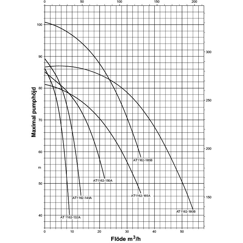 | MaxFlöde. | 7,0米3./H | 11,0 M3 / h | 19,0 M3 / h | 28,0 m3 / h | 34,0 m3 / h | 43,0m3 / h |