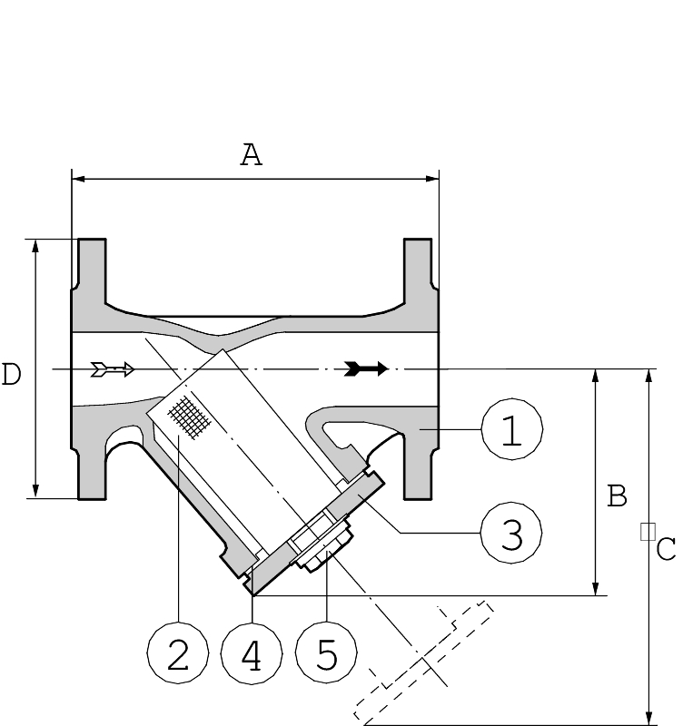 Smutsfilter AT 4028B, DN…Hus av gråjärn, PN 16, med uttag för differenstryckmätning, flänsar。Maskvidd 0, 6毫米。