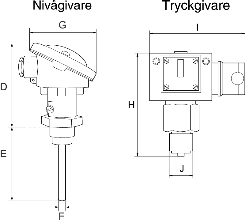 | Tryckgivare | 蒙特拉斯på invändigt gängad anslutning g1 /2。 |