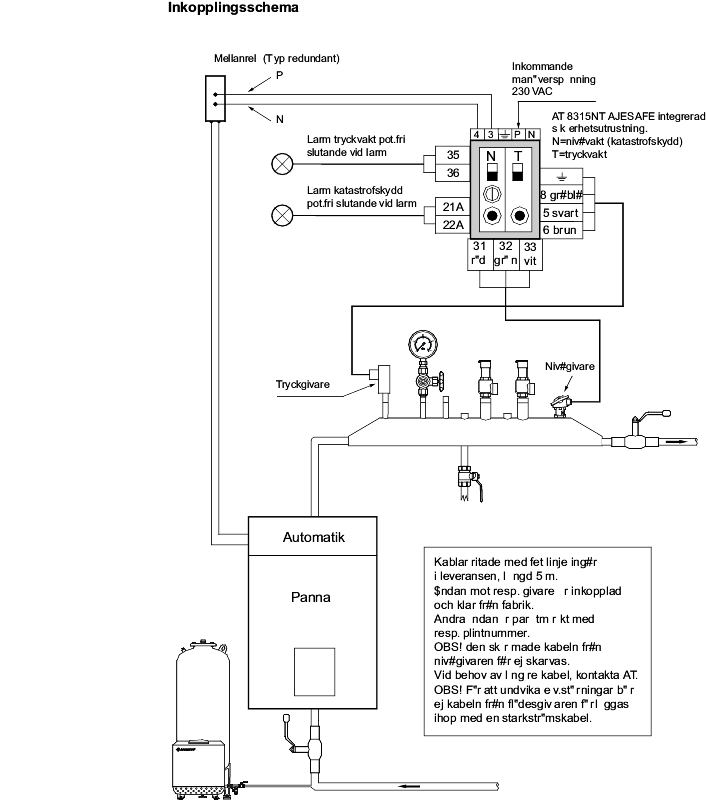Integrerad säkerhetsutrustning för panna över 100kw, komplett med nivåvakt (katastrofskydd), tryckvakt max 10 bar。