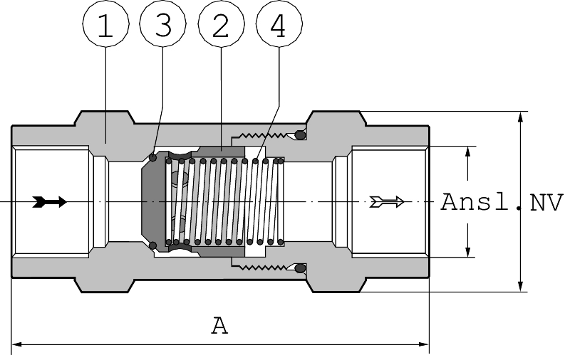 Backventil för i huvudsak vätskesystem med rena medier och små flöden, tryckluftsystem, korrosiva vätskor och gaser samt instrumentledningar。