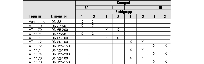 文蒂勒娜uppfyller kraven i AFS 2016:1, direktiet för tryckbärande andorningar enlight följande (endast högsta nivå ange):